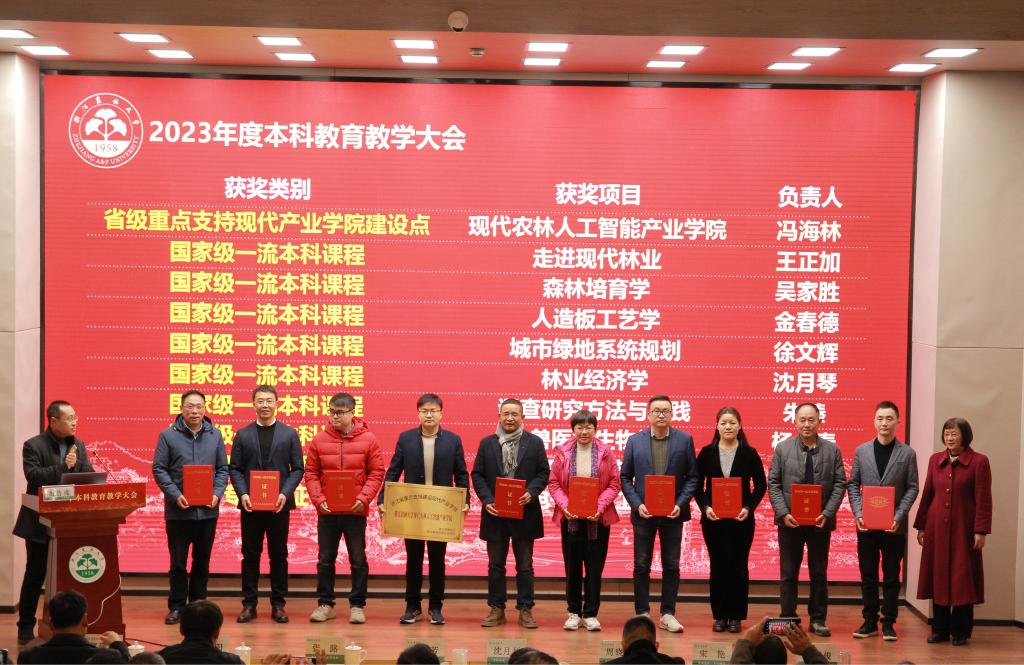 會議表彰了從事本科教學(xué)管理工作滿十五周年教師、優(yōu)秀教務(wù)人員、校優(yōu)質(zhì)教師(紅虹獎、一等獎)、浙江農(nóng)林大學(xué)大學(xué)生創(chuàng)新創(chuàng)業(yè)大賽優(yōu)秀指導(dǎo)教師團(tuán)隊、浙江省教師教學(xué)創(chuàng)新大賽、高校青年教師教學(xué)競賽獲獎?wù)摺⑿=虒W(xué)成果獎獲獎團(tuán)隊、國家級一流課程、專業(yè)認(rèn)證。為獲得省級重點支持現(xiàn)代產(chǎn)業(yè)學(xué)院建設(shè)點授牌。