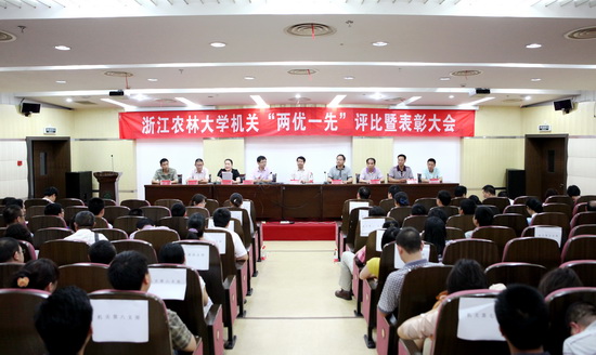 浙農林大新聞網訊 6月14日下午,學校機關“兩優一先”評比暨表彰大會在東湖校區圖書館第二報告廳舉行。校黨委副書記方偉為榮獲機關“兩優一先”的先進集體和個人頒獎,并為機關全體黨員上了一堂題為《加強機關黨的建設,服務學校中心工作》的黨課。
